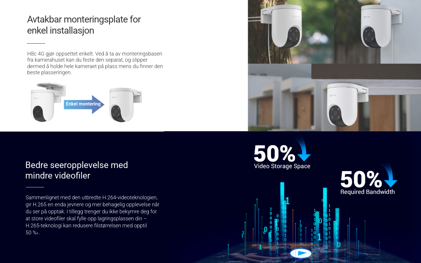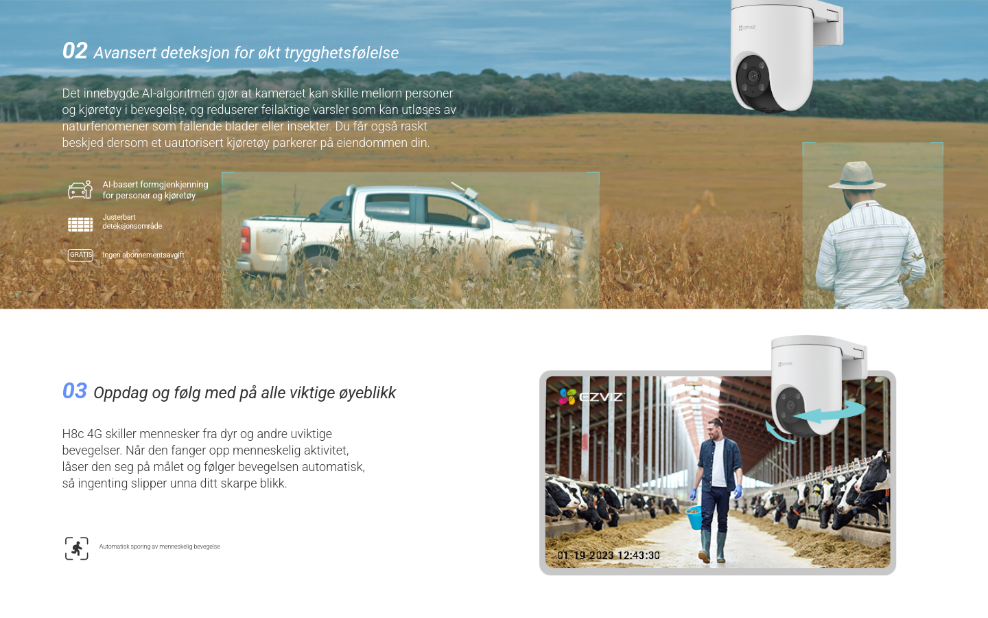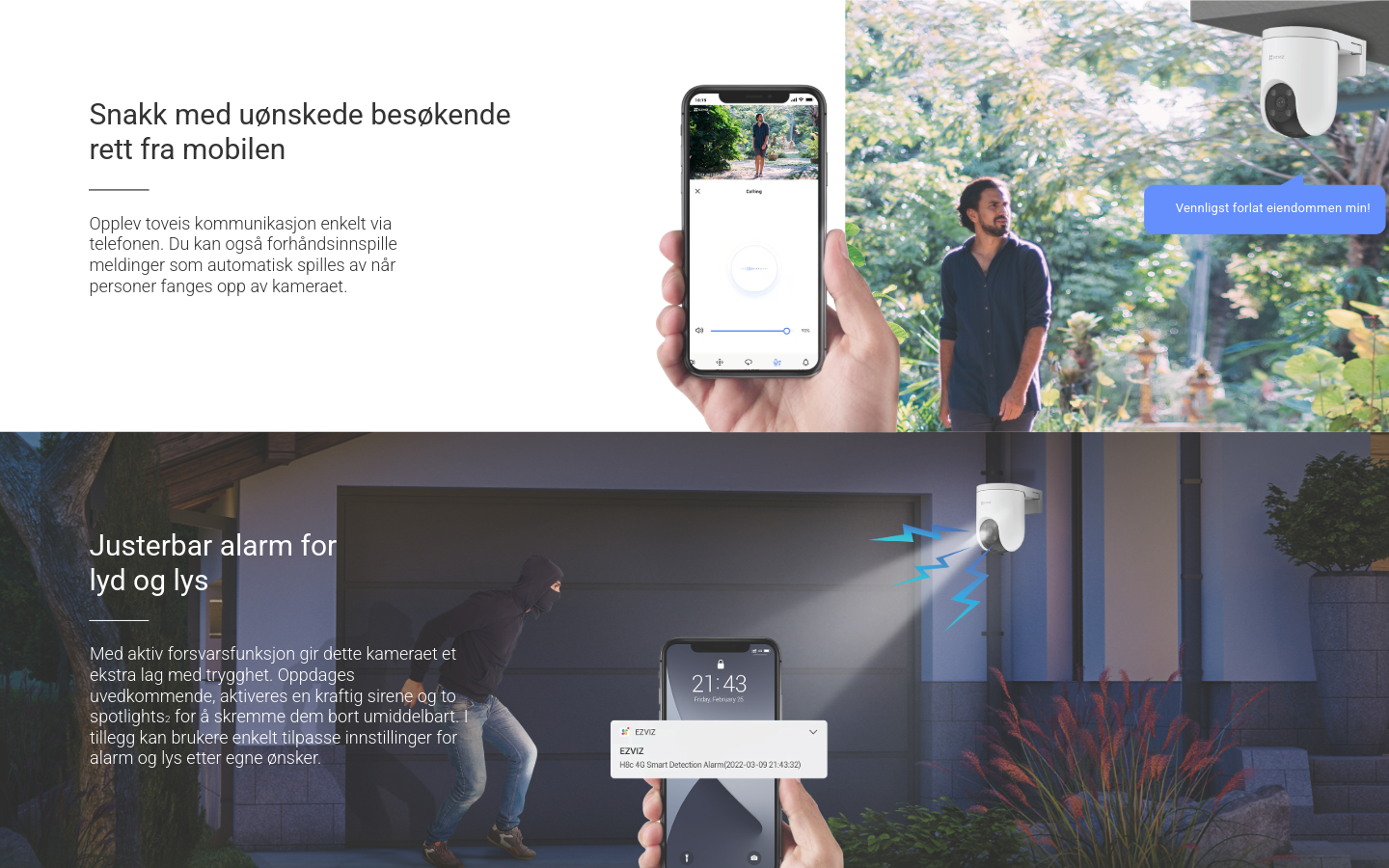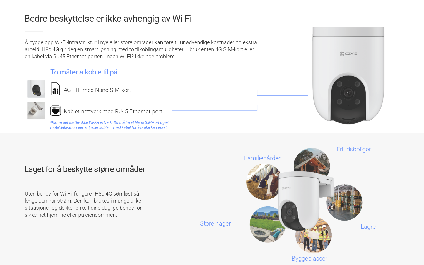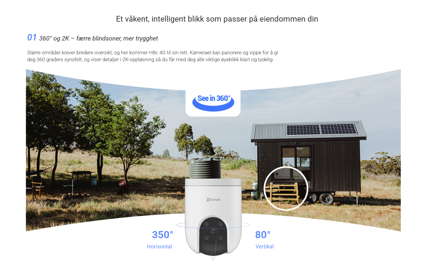 Smart overvåking – hvor som helst! 2K panoramakamera med AI-sporing, sirene og strobelys, to-veis tale og farge-nattesyn. Støtter 4G, kablet tilkobling og trygg lagring på MicroSD eller EZVIZ CloudPlay.