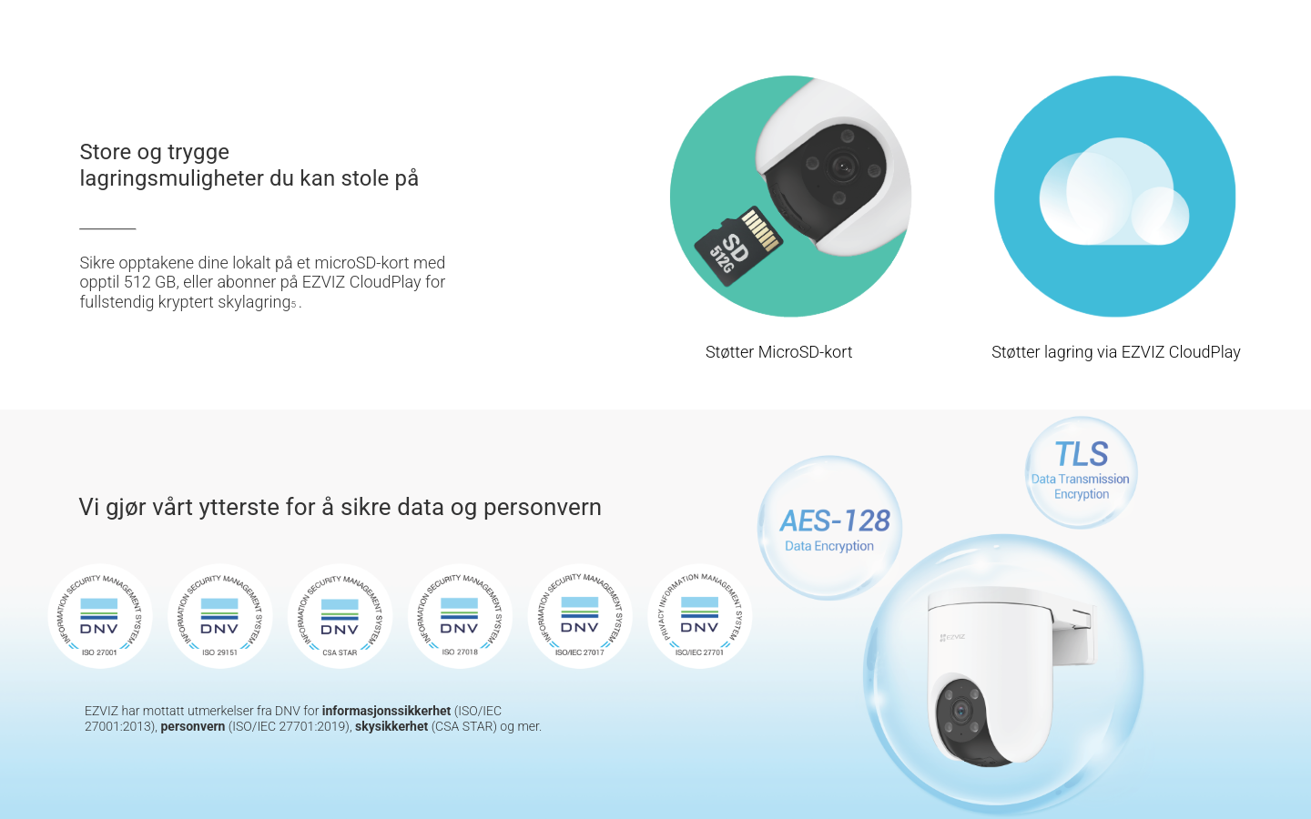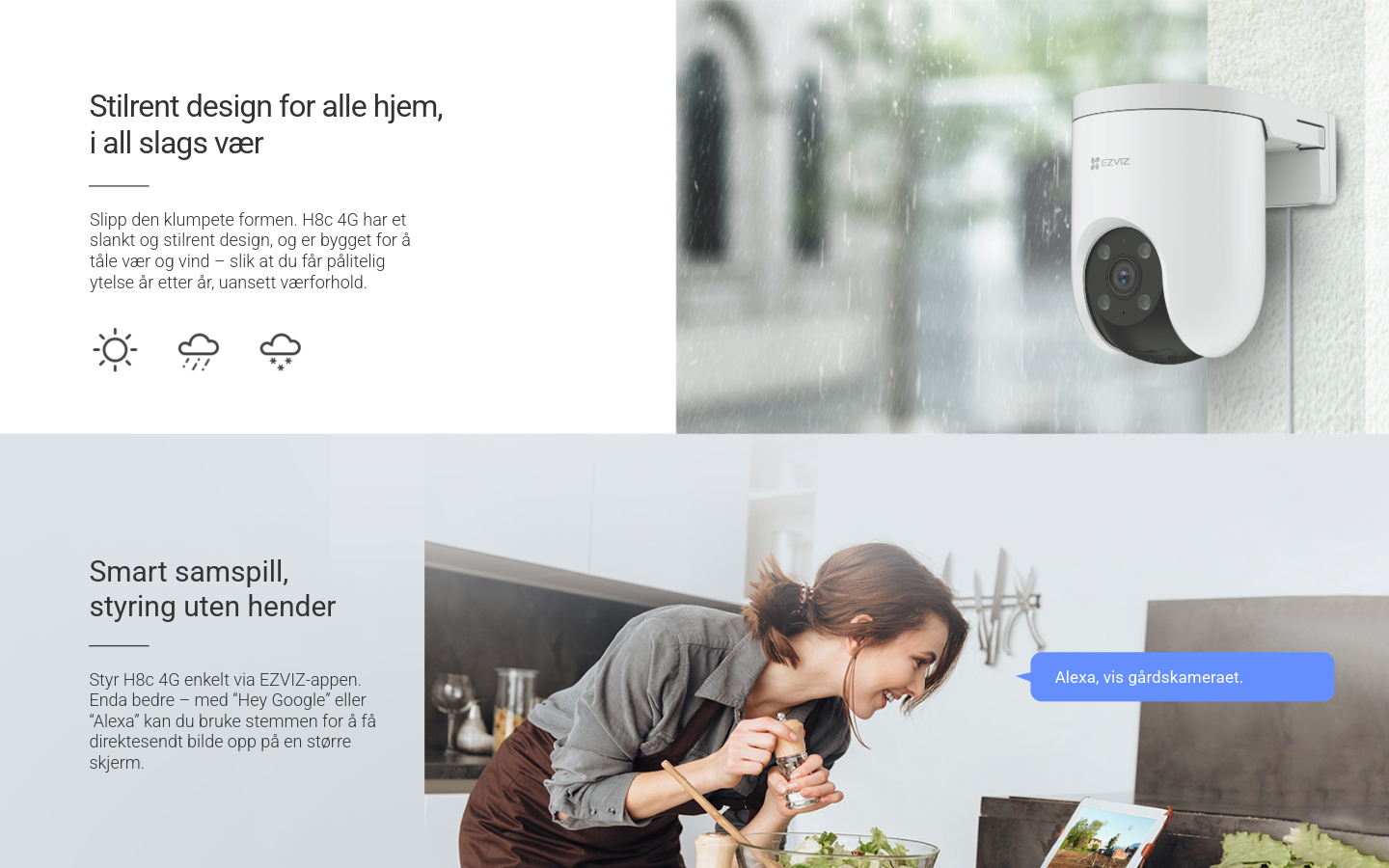Med aktivt forsvar via sirene og strobelys, to-veis tale og farge-nattesyn, får du både sikkerhet og kontroll døgnet rundt. Kameraet har værbestandig design, H.265 videoteknologi for effektiv lagring, og integrasjon med Google Assistant og Amazon Alexa. Lagring skjer enkelt via MicroSD (opptil 512 GB) eller EZVIZ CloudPlay, slik at opptakene alltid er trygge.