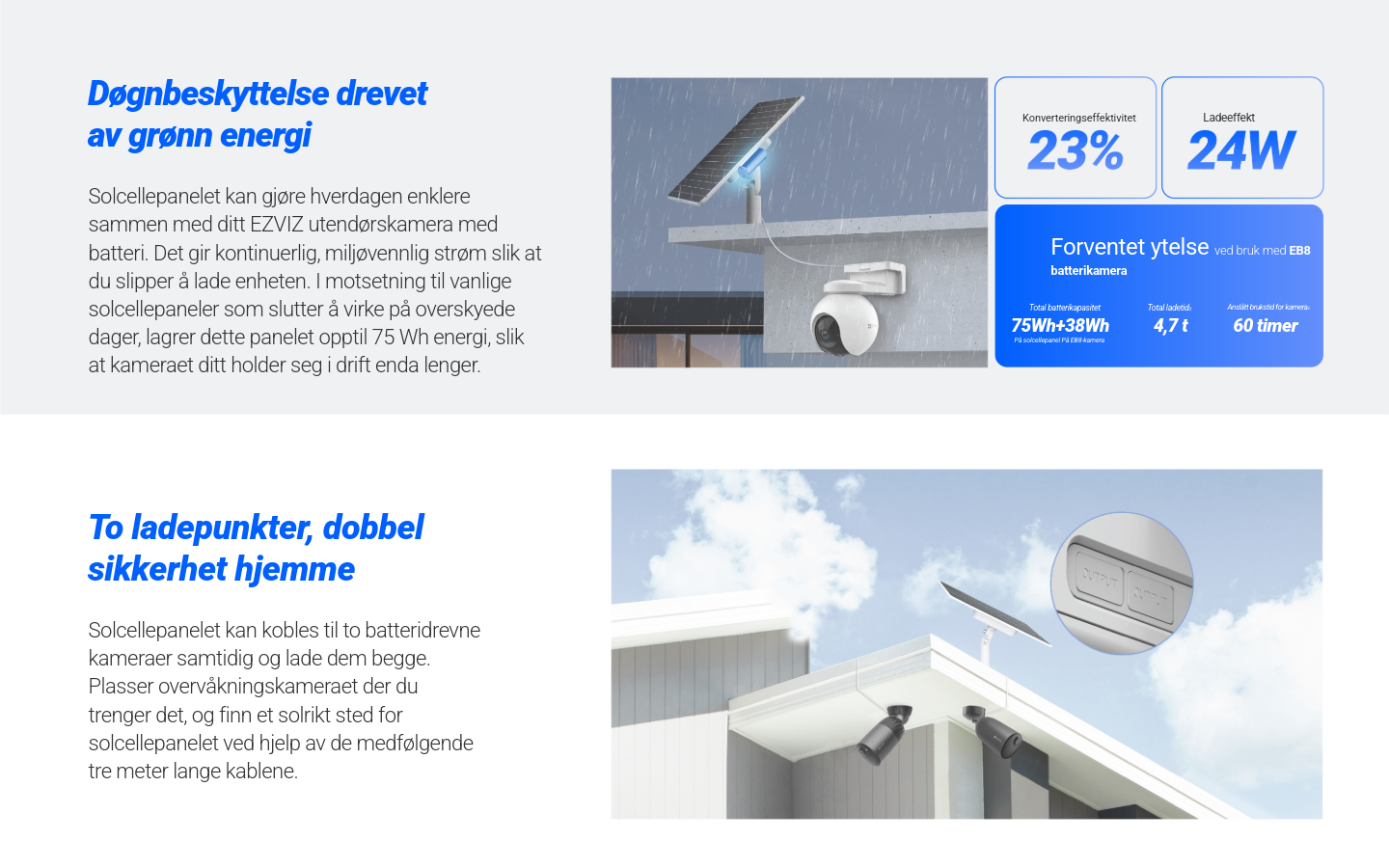 Perfekt for å holde overvåkingskameraet ditt gående døgnet rundt, uten hyppig batteribytte.