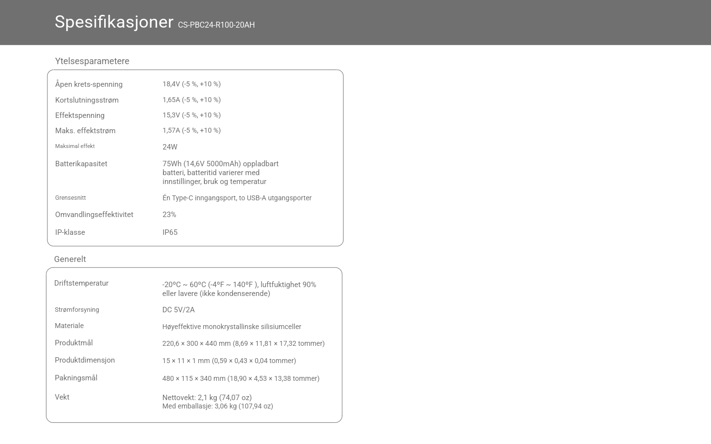 Solcellepanel – for kontinuerlig strøm til ditt sikkerhets kamera Kompatibel ned til -20°C 2 usb-c uttak 75Wh (15,000) amps kapasitet på 5v (Usb -c)