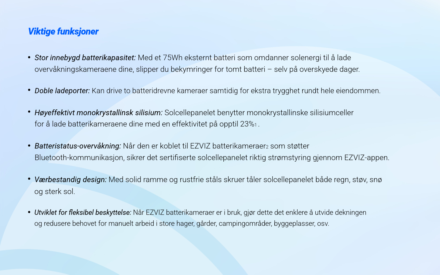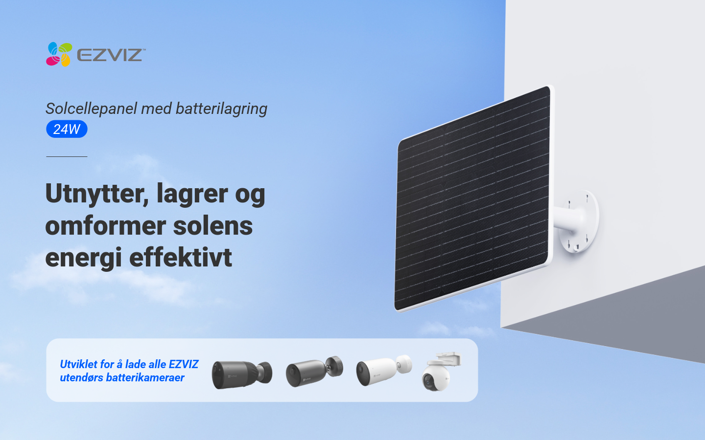 Få friheten til å plassere kameraet der du vil – uten å bekymre deg for strømtilførsel. Dette 24W solcellepanelet leverer kraftig og pålitelig lading, perfekt for EZVIZ batteridrevne kameraer.