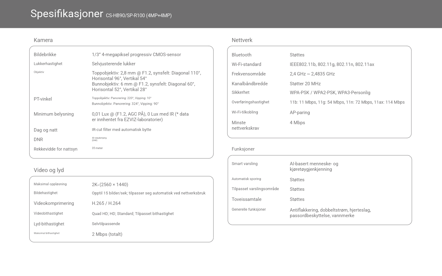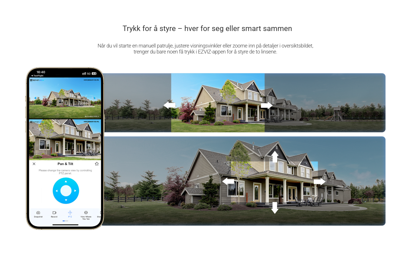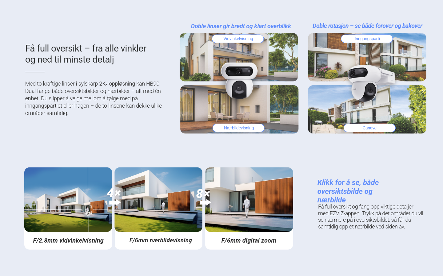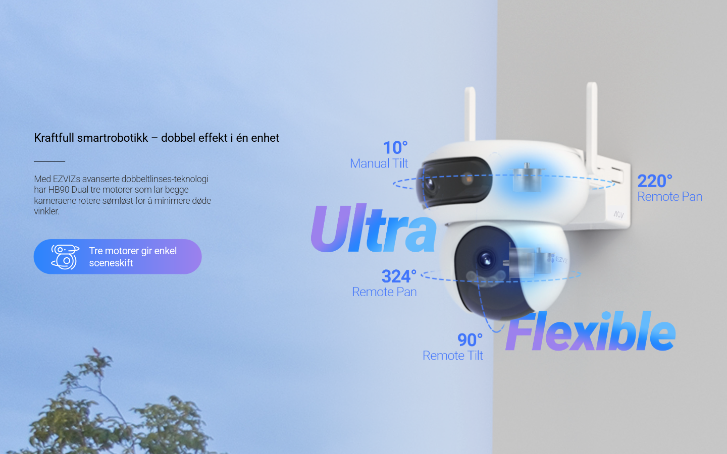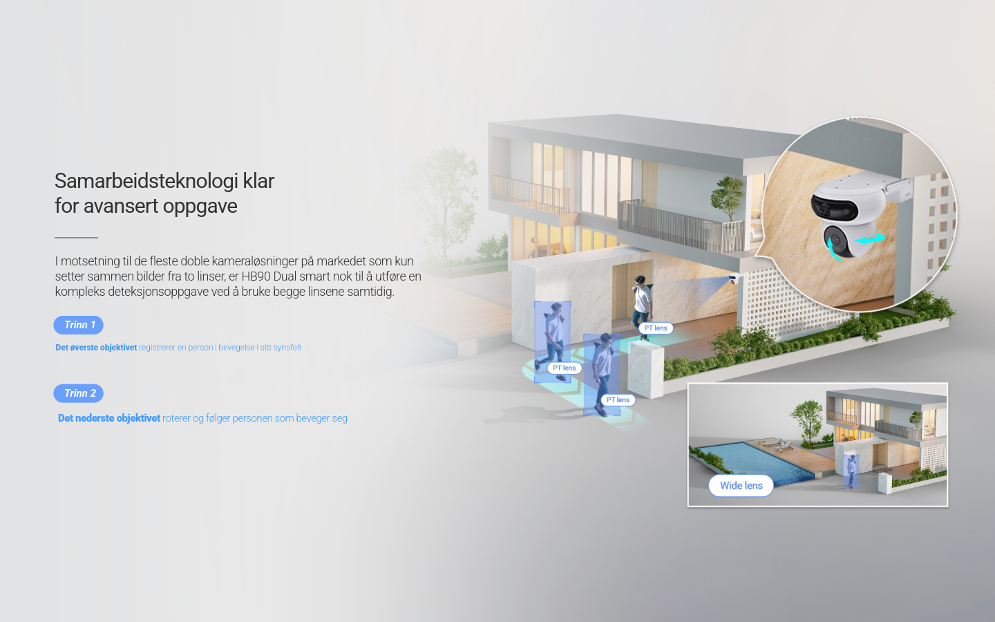 Dette 4MP+4MP smartkameraet leverer superklar bildekvalitet med fleksibel overvåking takket være dobbel rotasjon og automatisk smart sporing av mennesker og kjøretøy.
