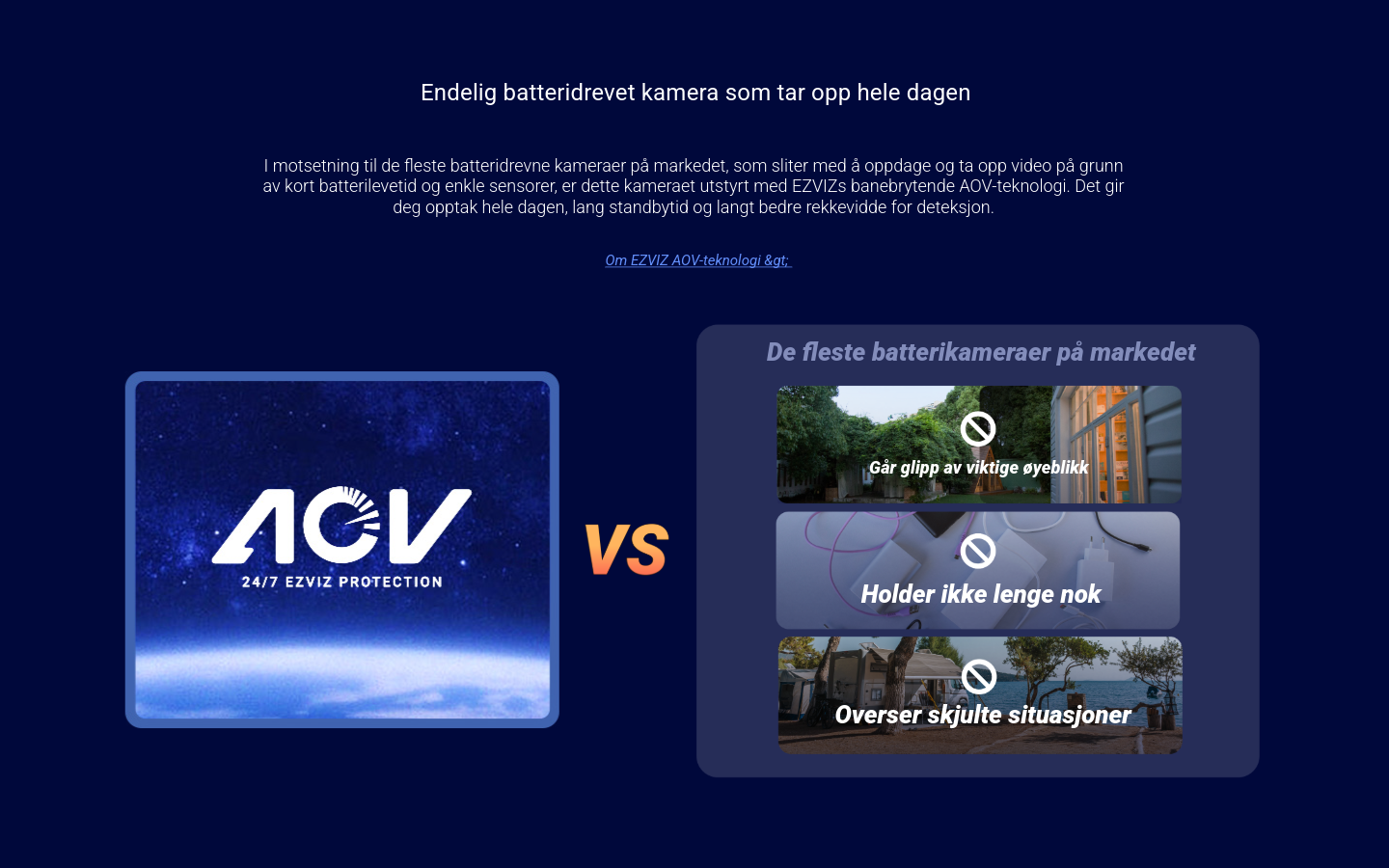 Kameraet støtter AOV-teknologi (always on video) med tidsforkortet 7×24 timers opptak, som sparer både batteri og lagringsplass.
