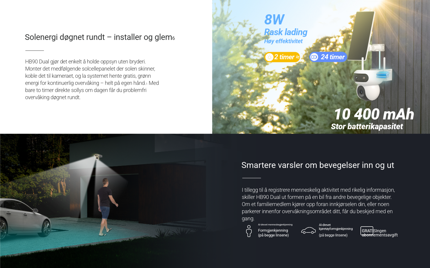 Støtte for Wi-Fi 6 gir raskere dataoverføring, og med inkludert 8W solcellepanel kan kameraet drives mer selvstendig og miljøvennlig.