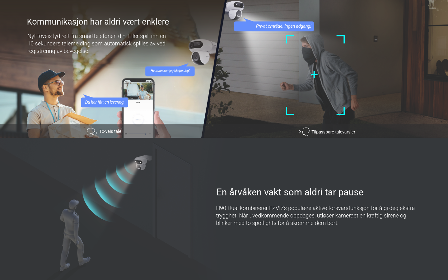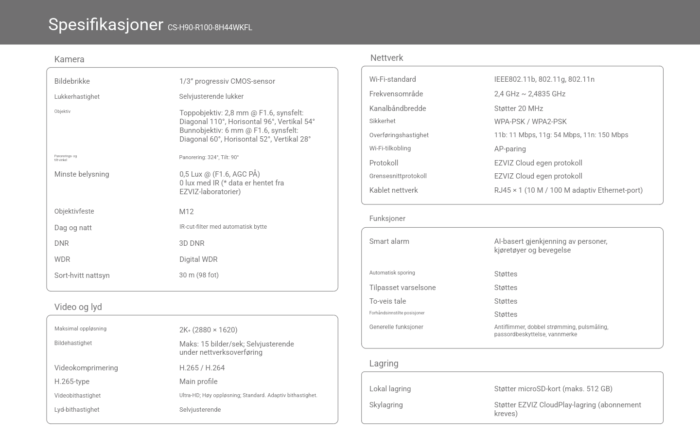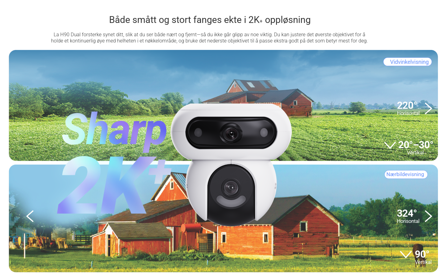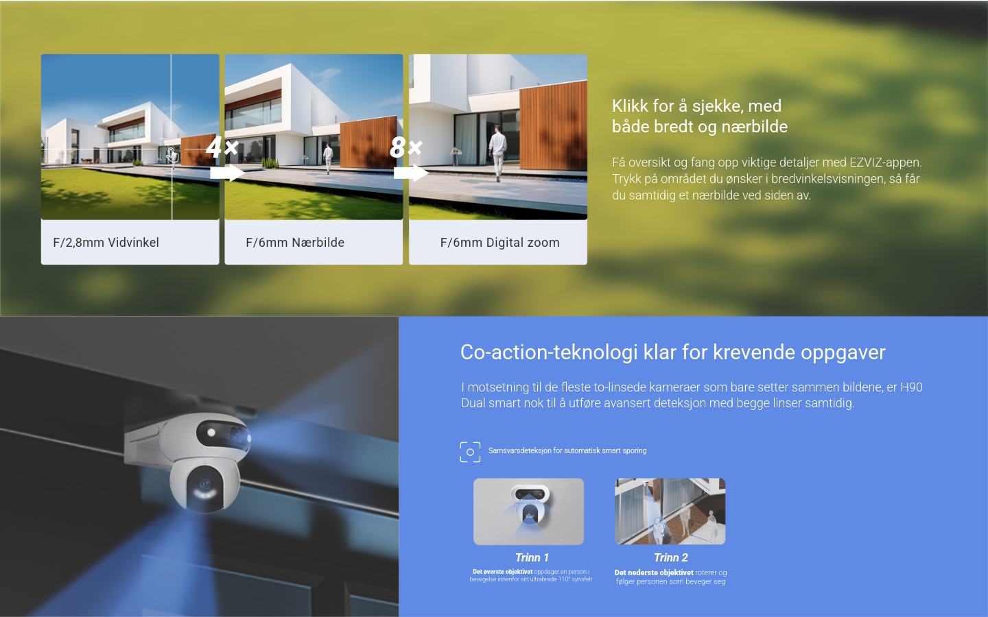 Full kontroll 24/7 med 2K+ dobbel linse! Smart sporing, lyd- og lysvarsler, 360° panoramadekning og farge-nattesyn. Kommuniser direkte med to-veis tale, og lagre opptak trygt på MicroSD, EZVIZ Cloud eller NVR.