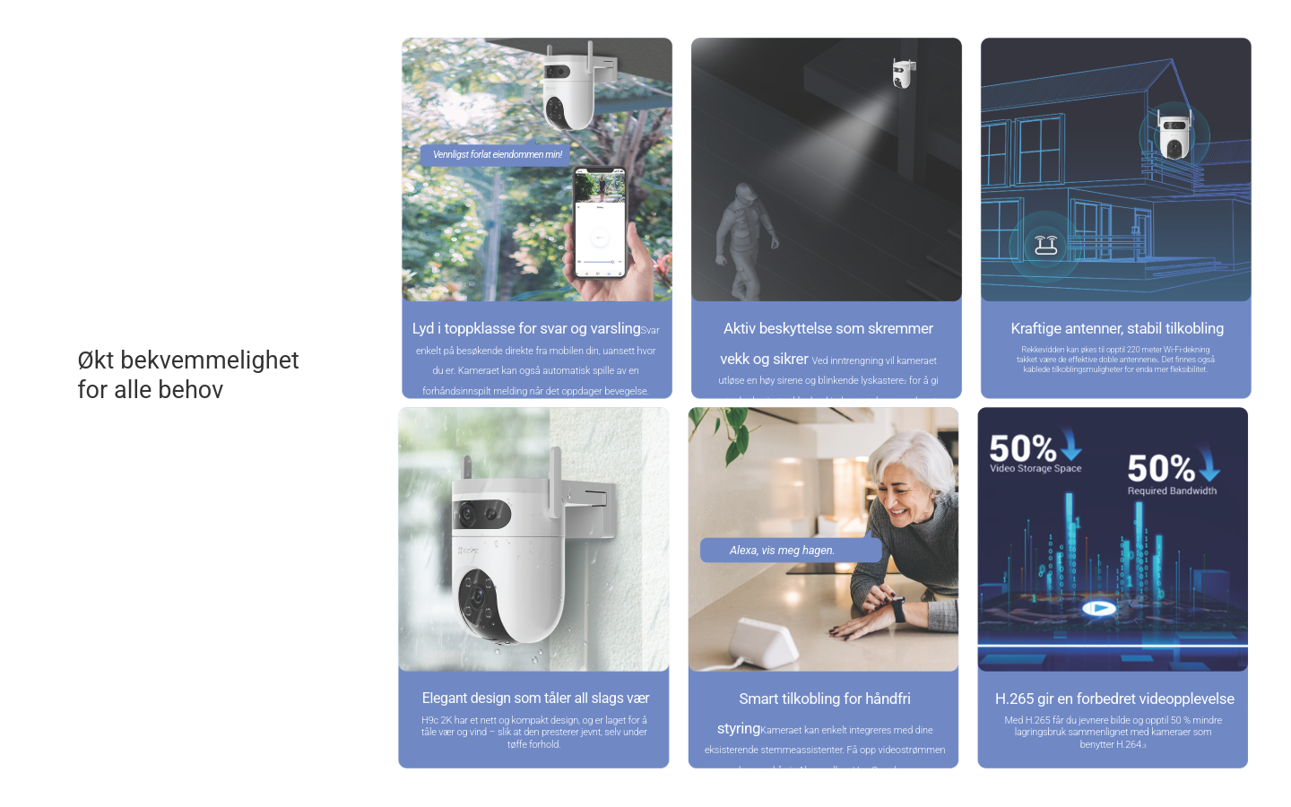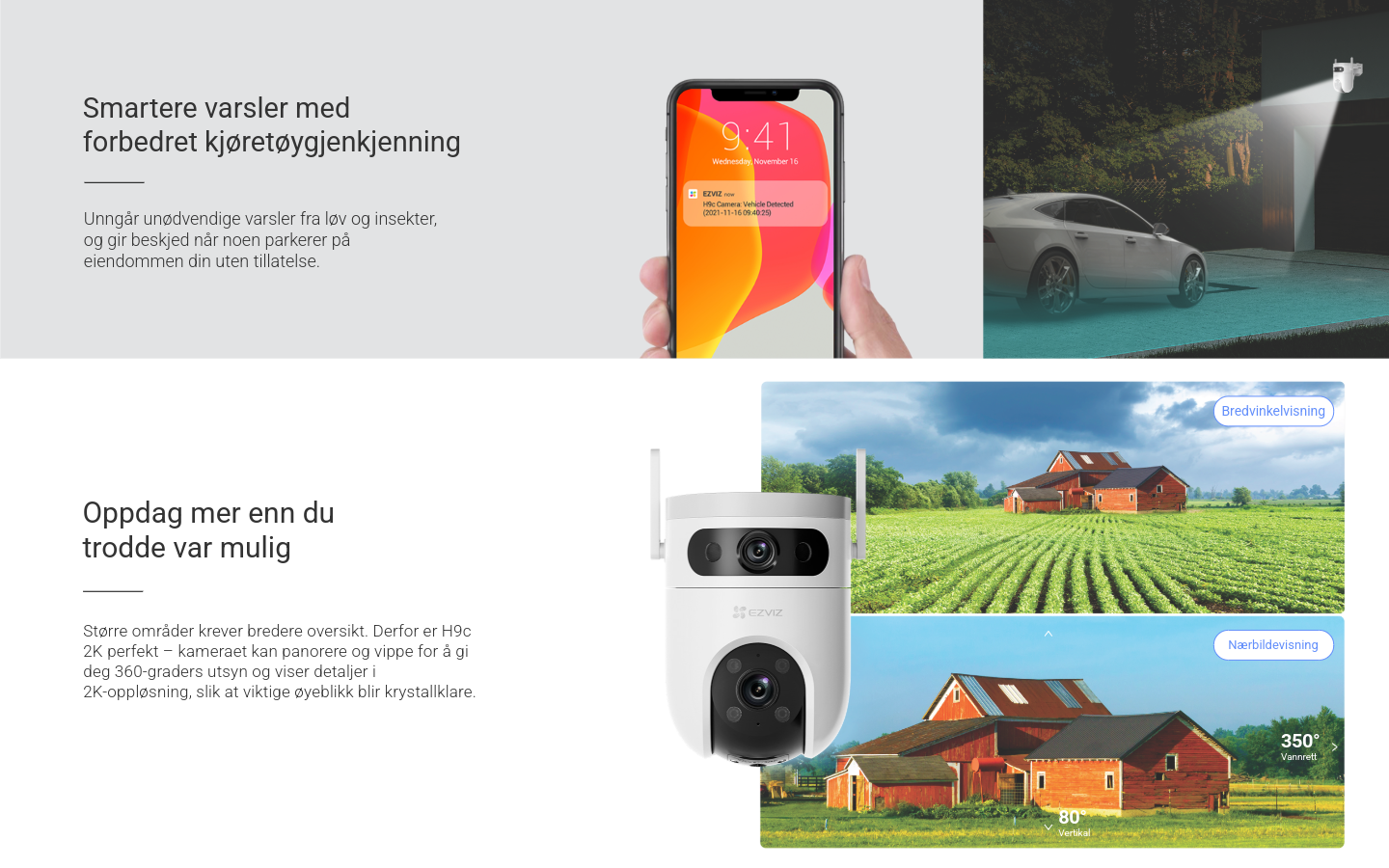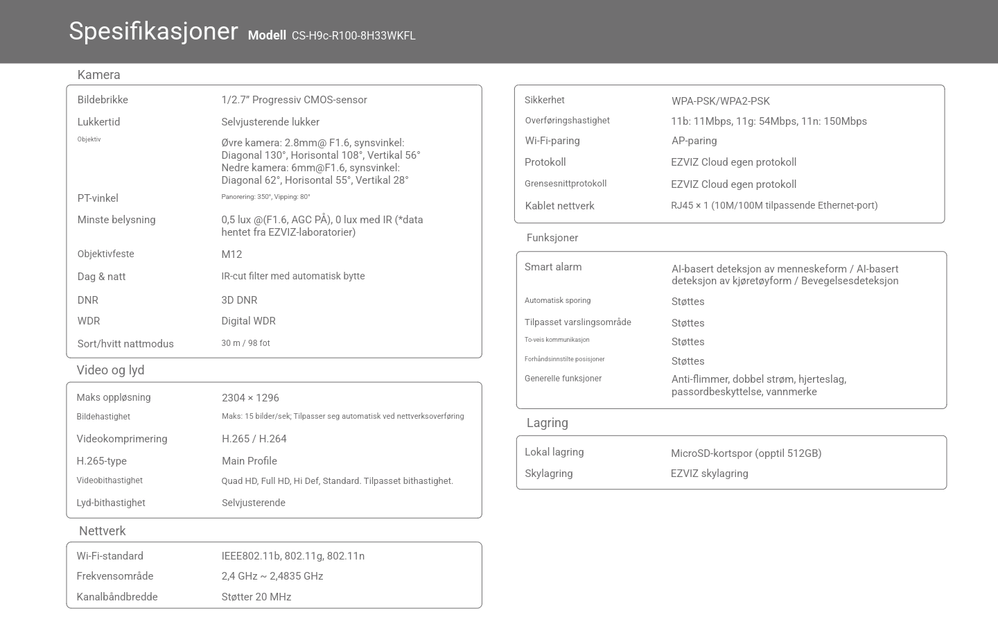 Lagring og sky: MicroSD-kort opptil 512 GB og EZVIZ Cloud-støtte for trygg lagring.
