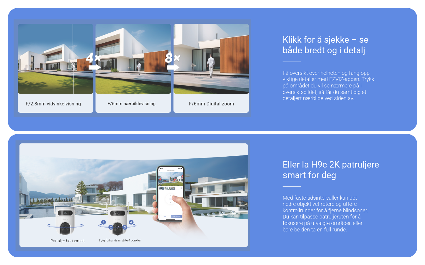 Automatisk sikkerhet: To patruljemoduser som holder eiendommen din trygg døgnet rundt.