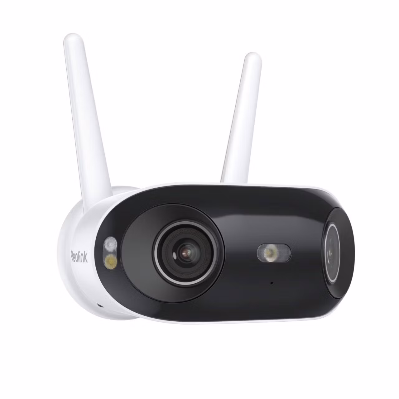 Reolink Elite Floodlight WiFi er et avansert strømdrevet utendørskamera med Spotlys og dobbel linse som gir en krystallklar 180° panoramavisning.